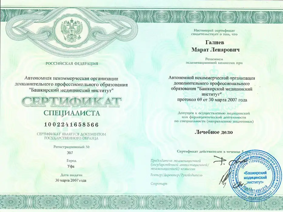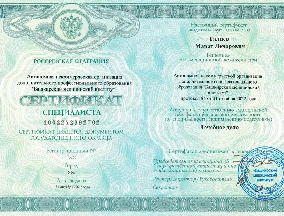 ВыходнойГалиев Марат Ленарович специализируется на лечении пациентов с алкогольной и наркотической зависимостью, предоставляя помощь как в стационаре, так и на дому. Он проводит первичное обследование, снимает абстинентный синдром и назначает фармакотерапию.